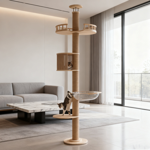 Modern Luxury Cat Tree & Cat House - Indoor Cat Furniture & Premium Pet Accessories Premium Cat Tree Wooden Cat Bed