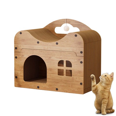 Corrugated Cardboard Cat House With Cat Toy Cat Scratcher Cat Product Wooden Cat House Cat Condo Cat House Scratch Pad