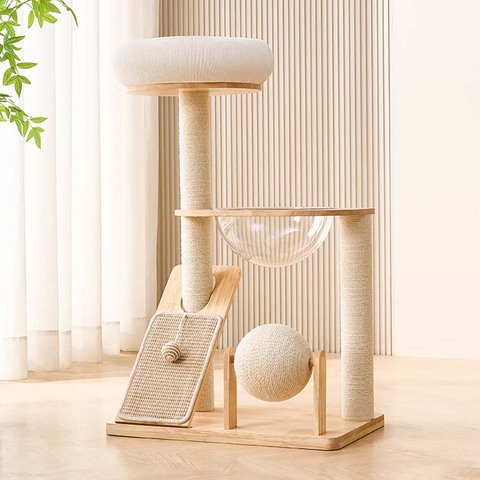 Luxury Large Solid Wood Cat Tree Tower With Cat Interactive Ball Toy Cat Climbing Frame With Cat Bed Cat Rolling Ball