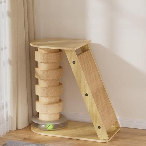 Modern Style Cat Scratching Post Wooden Cat Tree With Cat Teaser Cat Ball Toy String Cat Toys String Interactive